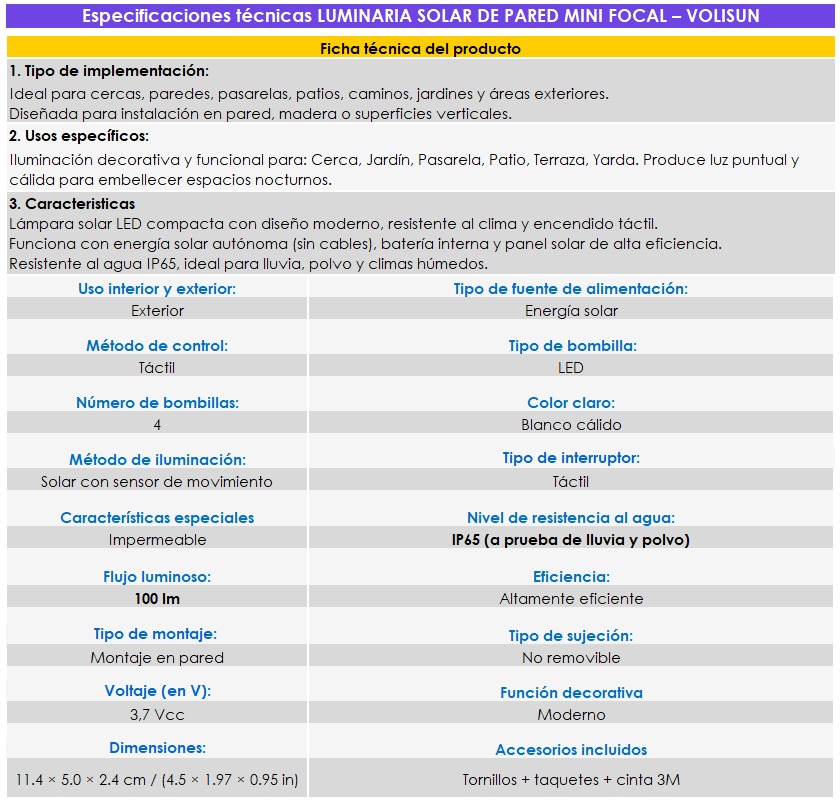 Ideal para cercas, paredes, pasarelas, patios, caminos, jardines y áreas exteriores. Diseñada para instalación en pared, madera o superficies verticales.