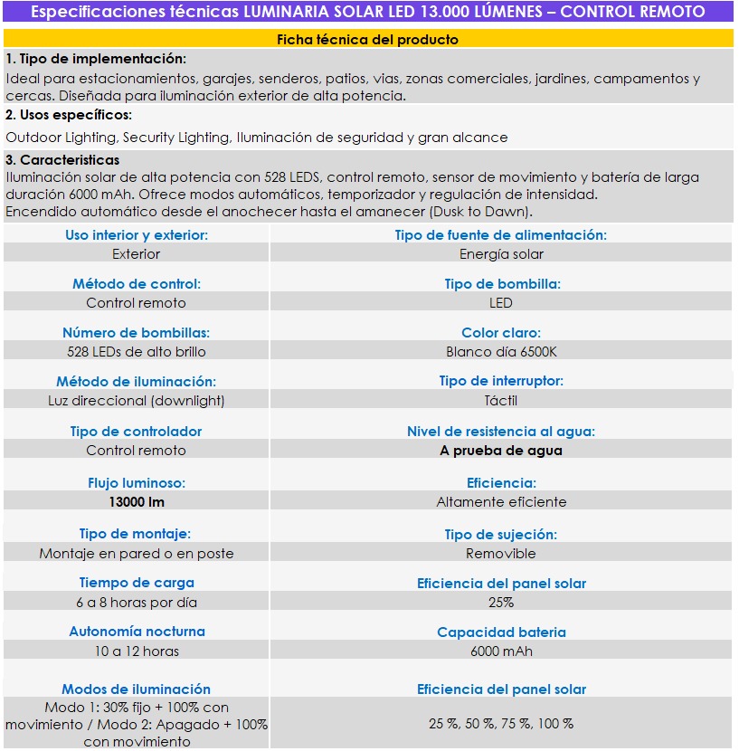 Ideal Ideal para estacionamientos, garajes, senderos, patios, vías, zonas comerciales, jardines, campamentos y cercas. Diseñada para iluminación exterior de alta potencia.