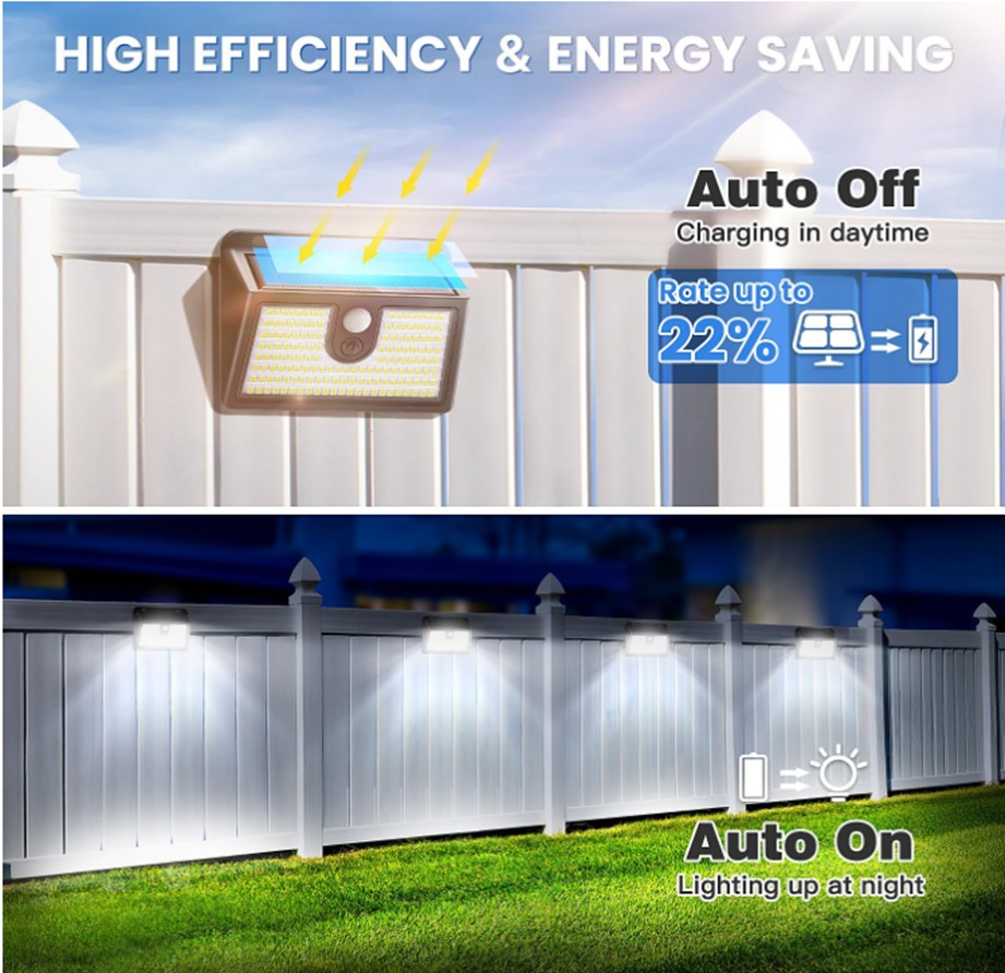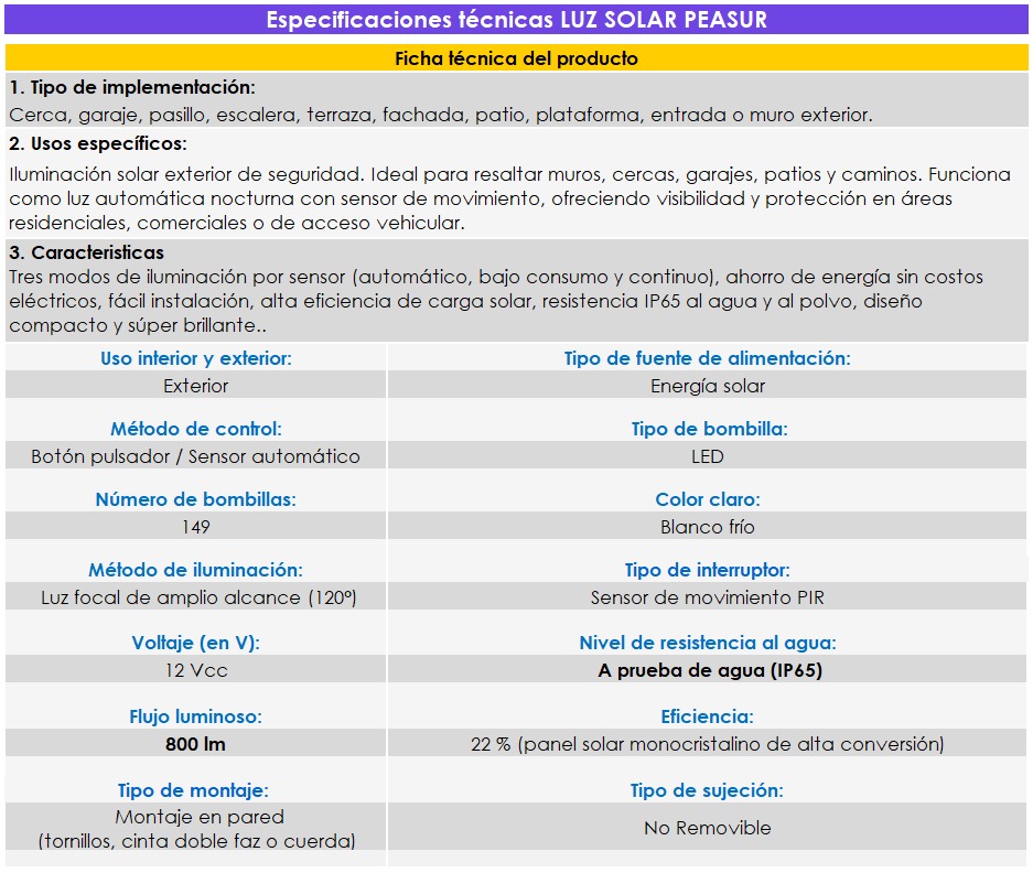 Iluminación solar exterior de seguridad. Ideal para resaltar muros, cercas, garajes, patios y caminos.